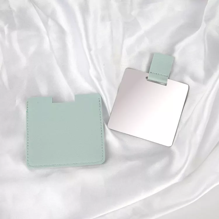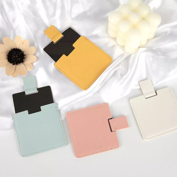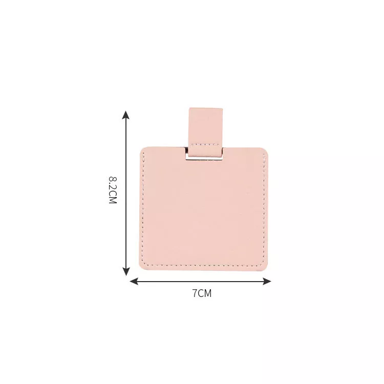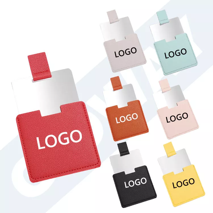 Dette lommespeilet i kredittkortstørrelse har et mykt PU-skinndeksel og en bruddsikker overflate i rustfritt stål. Den slanke, bærbare designen passer lett i lommebøker eller vesker, ideell for touch-ups mens du er på farten. Tilpassbar logo og farger gjør den perfekt for gaver eller merkevarebygging.