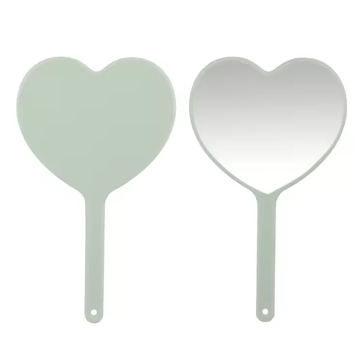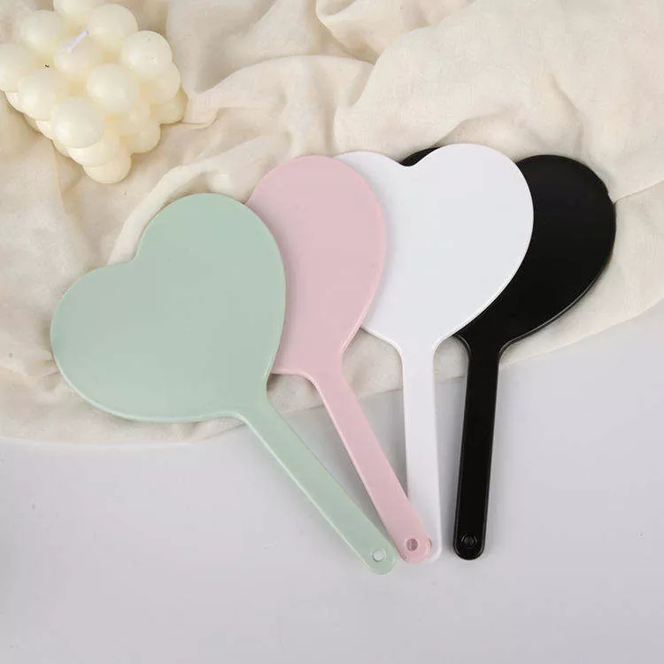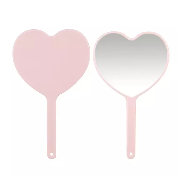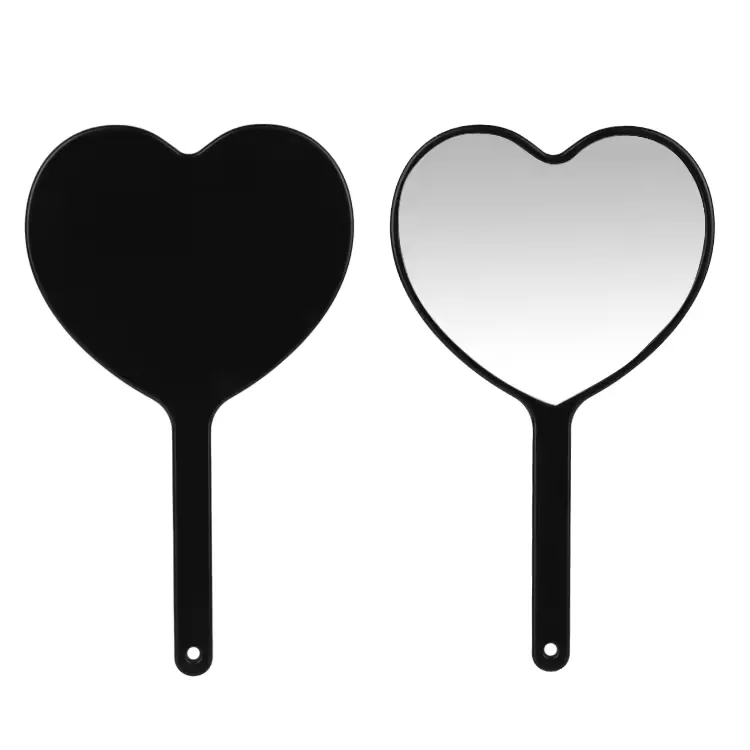 Dette søte hjerteformede håndholdte sminkespeilet har en høyoppløselig, forvrengningsfri glassoverflate for presis sminkepåføring. Det lette plasthåndtaket med et hengende hull sikrer enkel portabilitet og oppbevaring. Tilgjengelig i flere farger, støtter den tilpasset logoutskrift – ideell for private label, gaver eller salongbruk.