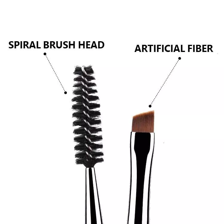 Eye Makeup Brush Single er en tosidig skjønnhetsessensiell. Den har en presist vinklet syntetisk børste for øyenbrynsdefinisjon og eyeliner, sammen med en spoolie for pleie og blanding. Det slanke håndtaket sikrer komfortabel kontroll, ideelt for daglig og profesjonell øyesminke.